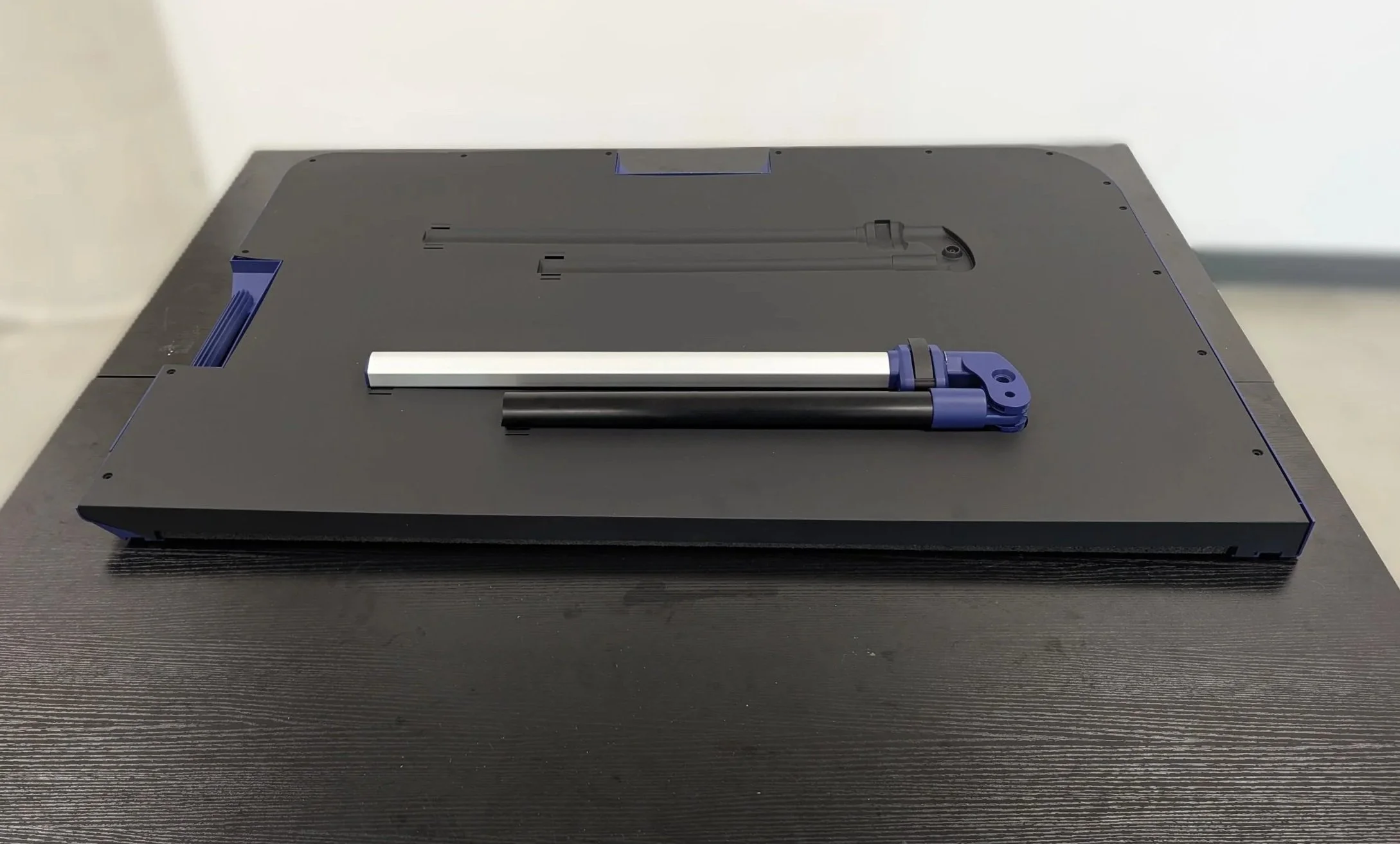 Design Approach: Explored different telescoping extrusion designs and locking mechanisms to create the collapsible barre. To keep the base sturdy yet lightweight, an injection molded shroud was designed around a stack of expanded foam, honeycombed PP, and Marley rubber.